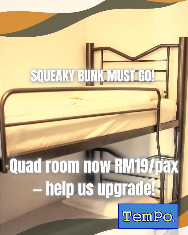 TEMPO酒店提供多種客房選擇,包括1間雙層床混合宿舍(9平方米,1張雙層床)、1間標準雙人床私人浴室客房(10平方米,1張雙人床)、1間標準雙人床窗景客房(1張雙人床)以及1間不帶窗景的標準雙人床或雙床客房(1張雙人床)。在Agoda上預訂這些客房不僅能獲得最優惠的價格,還能享受輕鬆便捷的預訂體驗。